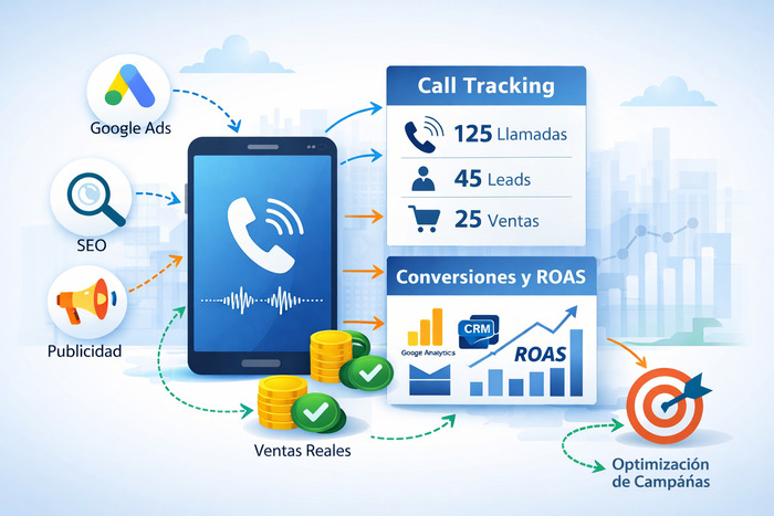 La medición y atribución de llamadas en marketing digital sigue siendo uno de los puntos más débiles en muchas estrategias. La mayoría de empresas analizan formularios, campañas en Google Ads o tráfico SEO, dejando fuera de los sistemas de conversión las llamadas telefónicas.